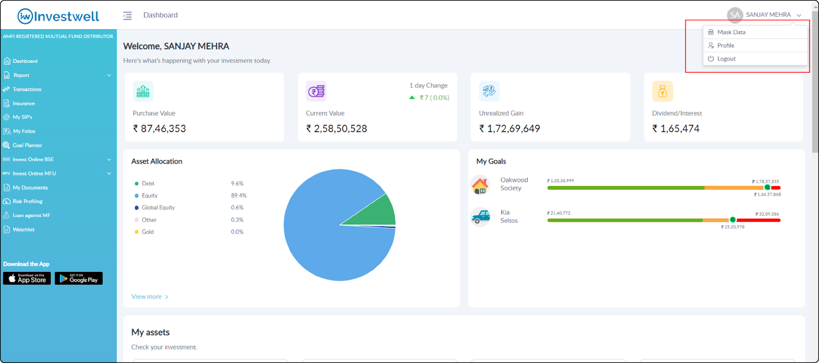 Go to Investor Dashboard > Click on the Profile > Mask Data