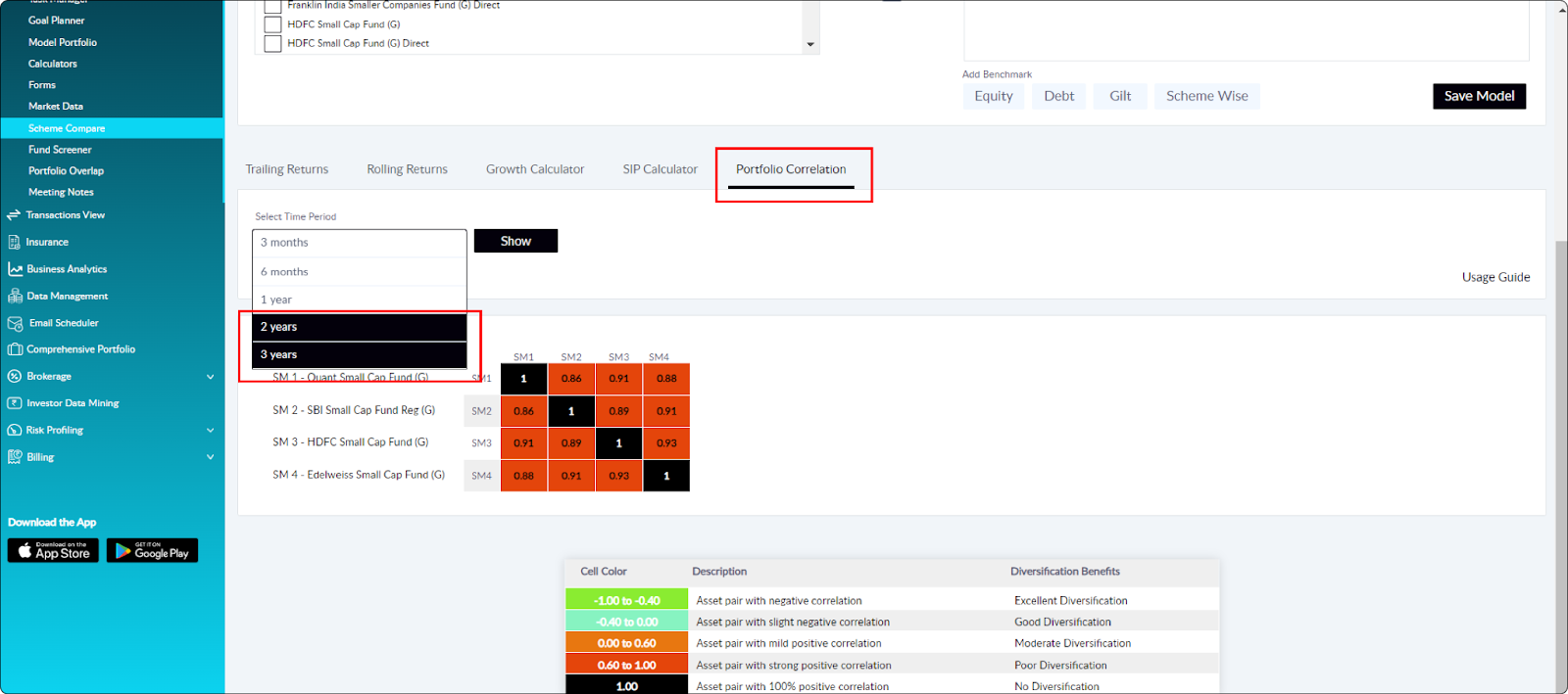 Utilities > Scheme Compare > Portfolio Correlation