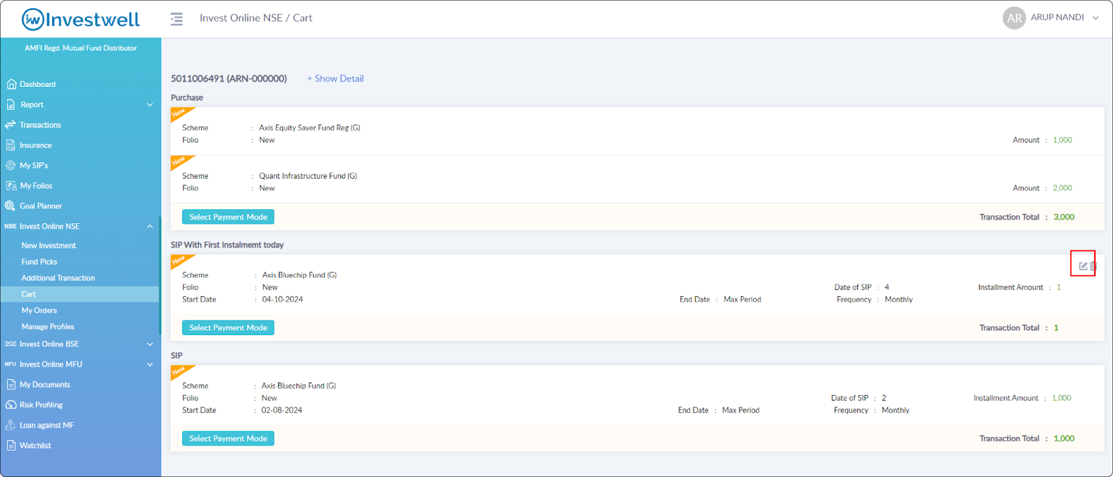 The NSE Cart has been revamped. It now separates the orders with only SIP and SIP with the 1st instalment today into two different sections
