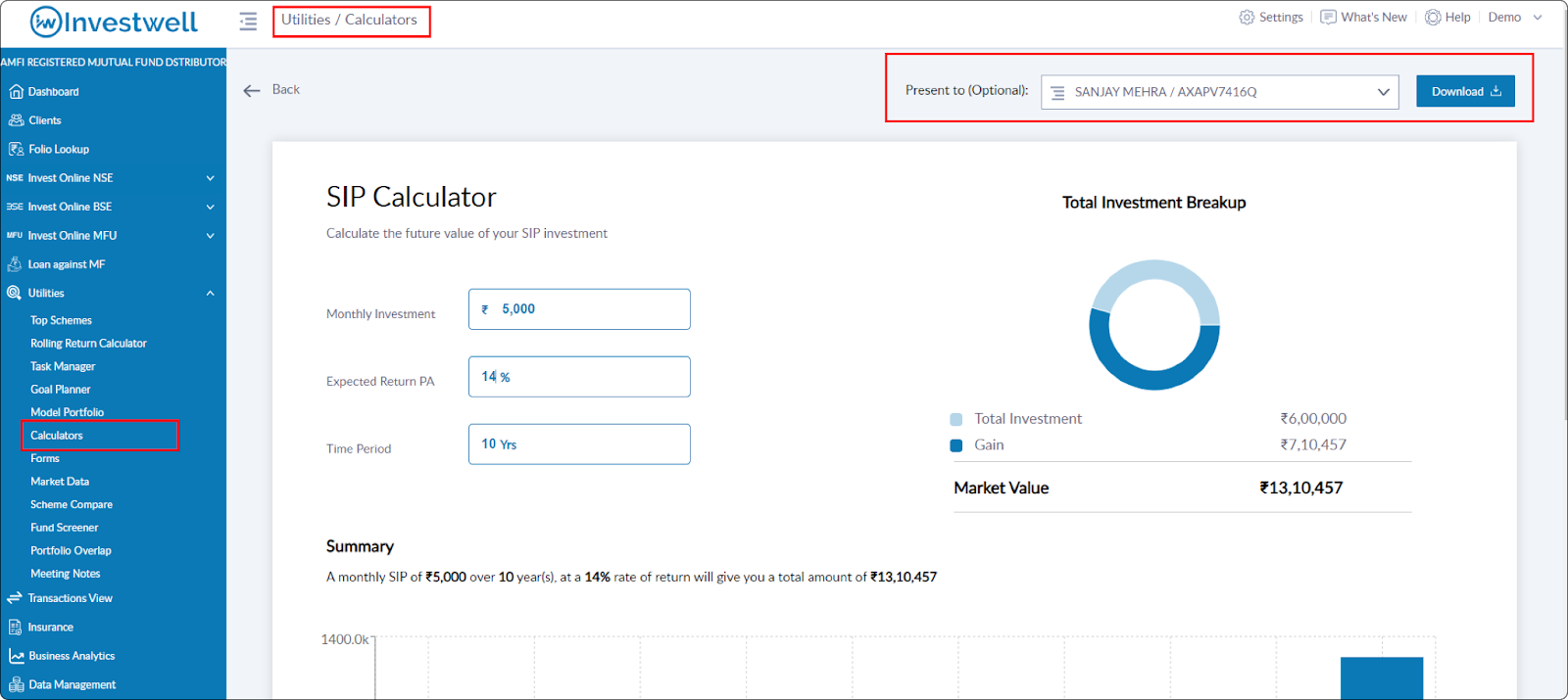 The SIP calculator has been revamped with a fresh design supporting theme-based colouring for dark shade and light shade.