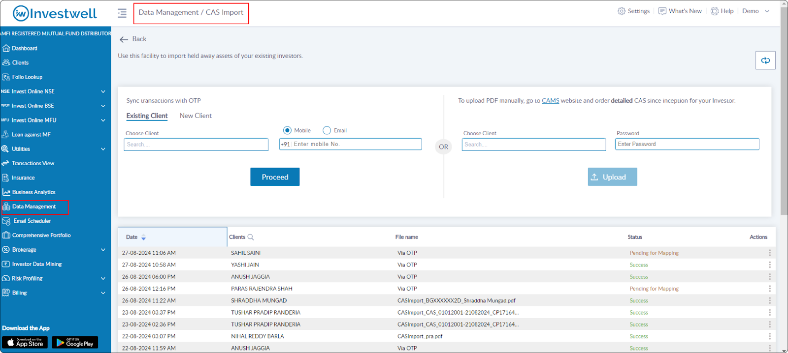 Data Management > Create Transaction > Mutual Fund > Bulk Upload > FundsIndia