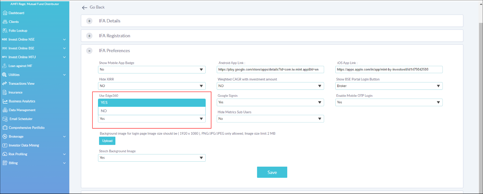 Setting > Portal Setting > IFA Preferences >