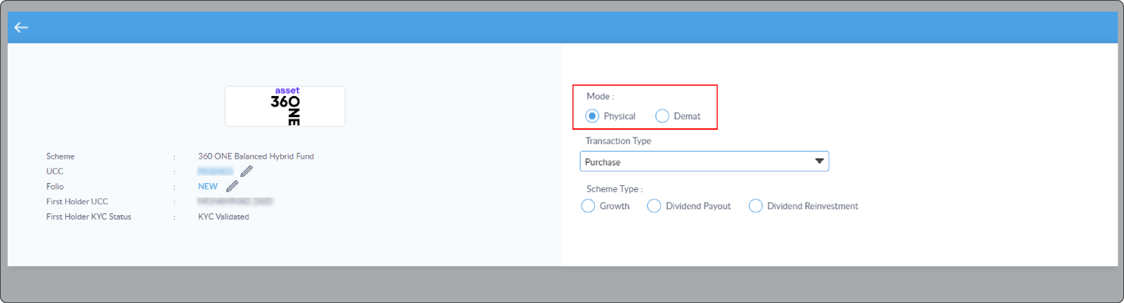 A user reported a bug where while making a new investment in an existing folio for their client a demat order got placed in physical mode