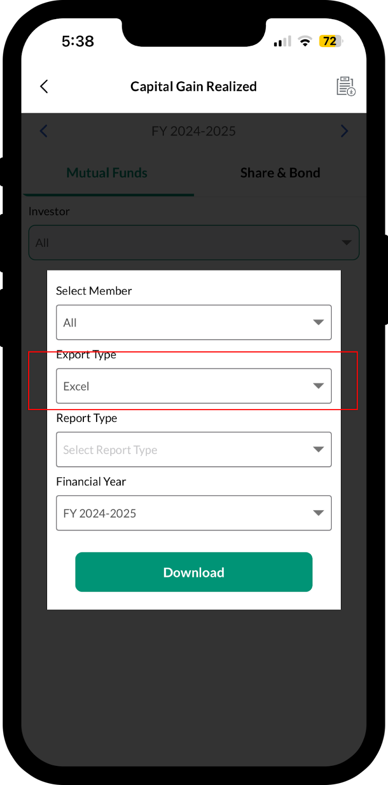 To Download Capital Gain Realized Report